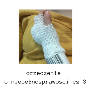 Dlatego nie ma się co obawiać składać wniosek o orzeczenie o niepełnosprawości – bo to nie oznacza, że Wasze dziecko skazane jest na wózek inwalidzki tylko, że przez rok lub dwa będzie potrzebowało intensywnej rehabilitacji lub terapii. Oczywiście będą i takie dzieci, które już nigdy nie pożegnaj się z orzeczeniem ale to już inna historia.